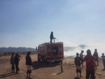 الدفاع المدني بشبوة يخمد حريقاً بجانب سوق القات المركزي بمدينة عتق