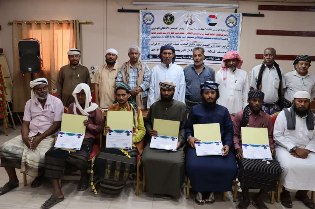 انتقالي أبين يختتم مسابقة الرئيس الزُبيدي لحفظ القرآن الكريم في نسختها الثالثة بتكريم المتسابقين