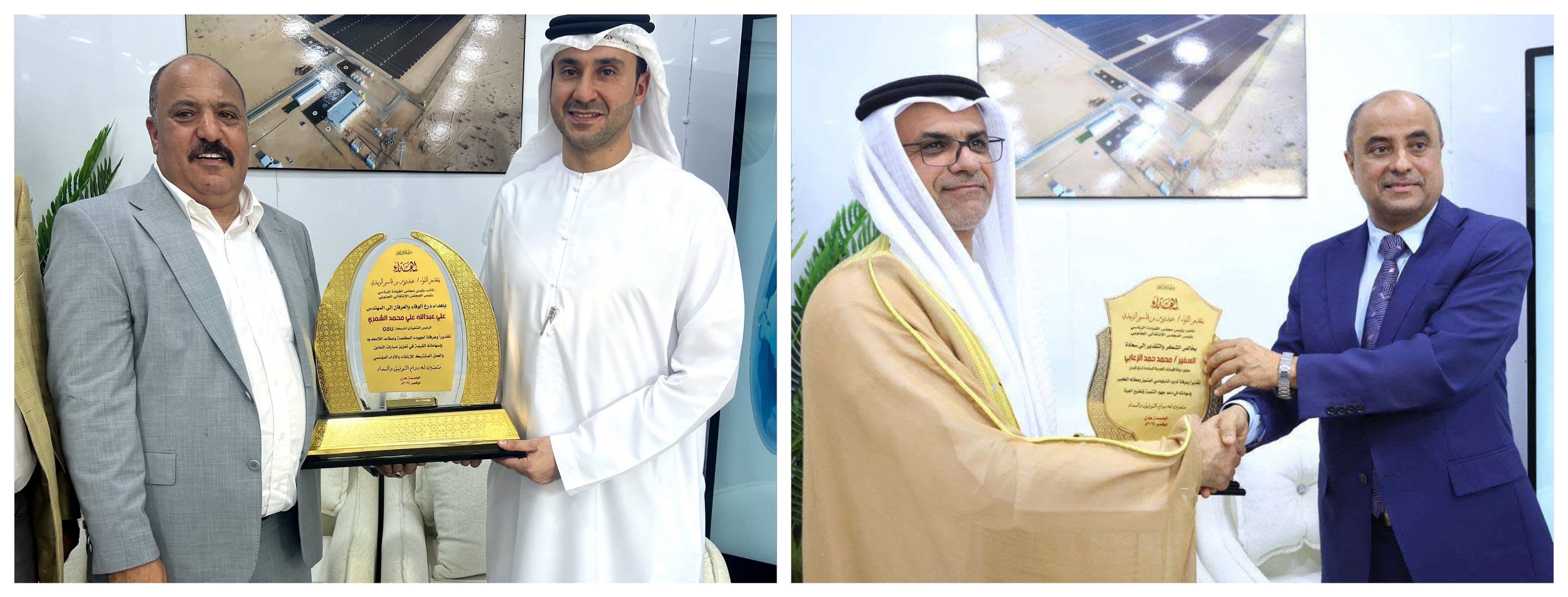 وسلّم درع التكريم نيابة عن الرئيس الزُبيدي، رئيس مجلس الوزراء الأستاذ سالم بن بريك، وذلك على هامش انعقاد المؤتمر الوطني الأول للطاقة في العاصمة عدن، تقديراً وعرفاناً للدور الدبلوماسي المتميز للسفير الزعابي، وعطائه الكبير، وإسهاماته البارزة في دعم جهود التنمية وتطبيع الحياة في البلاد.