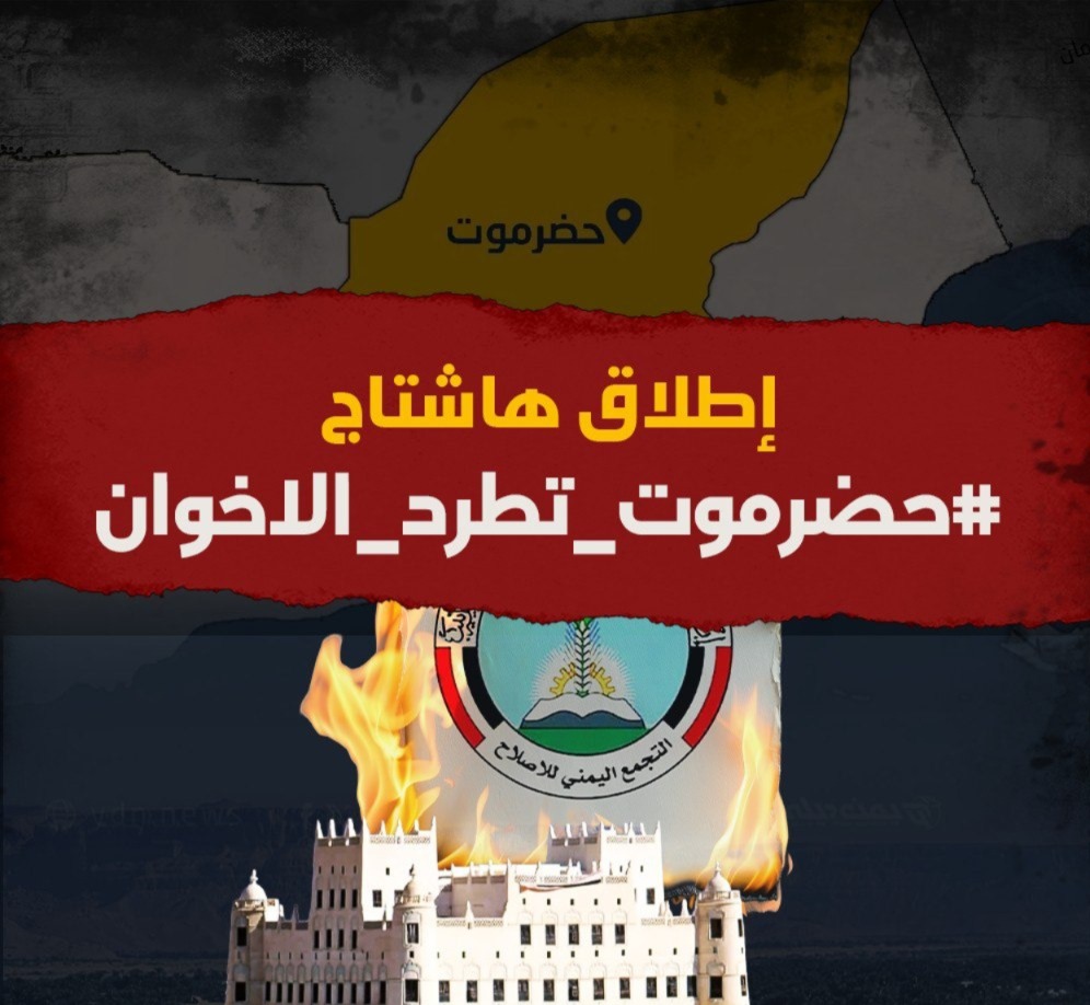 أطلق ناشطون جنوبيون، اليوم الثلاثاء، هاشتاج #حضرموت_تطرد_الاخوان على منصات التواصل الاجتماعي، مطالبين بإنهاء وجود القوات التابعة للمنطقة العسكرية الأولى المرتبطة بحزب الإصلاح، وإحلال قوات النخبة الحضرمية مكانها، دعمًا للقوات الجنوبية في مواجهتها لما وصفوه بـ الإرهاب الإخواني.
