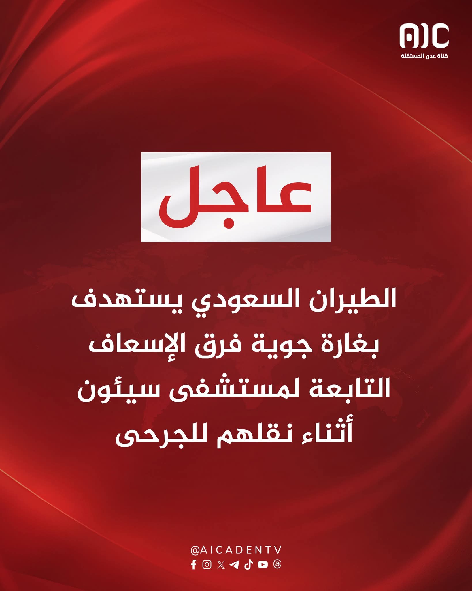 عاجل / غارة جوية تستهدف فرق إسعاف في سيئون أثناء نقل الجرحى