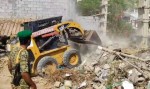 برفقة الاشغال .. وحدة حماية الأراضي بقيادة المقدم كمال الحالمي تزيل بناء عشوائي أمام بوابة المجمع بالمنصورة