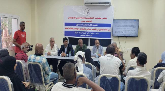 نظّم مجلس نقابة الصحفيين والإعلاميين الجنوبيين فرع العاصمة عدن، اليوم الأحد 25 مايو حلقة نقاشية موسعة تناولت دور الإعلام الجنوبي في المشهدين السياسي والاقتصادي، وسبل التصدي للحملات الإعلامية المعادية والمغرضة التي تستهدف الجنوب ومؤسساته.