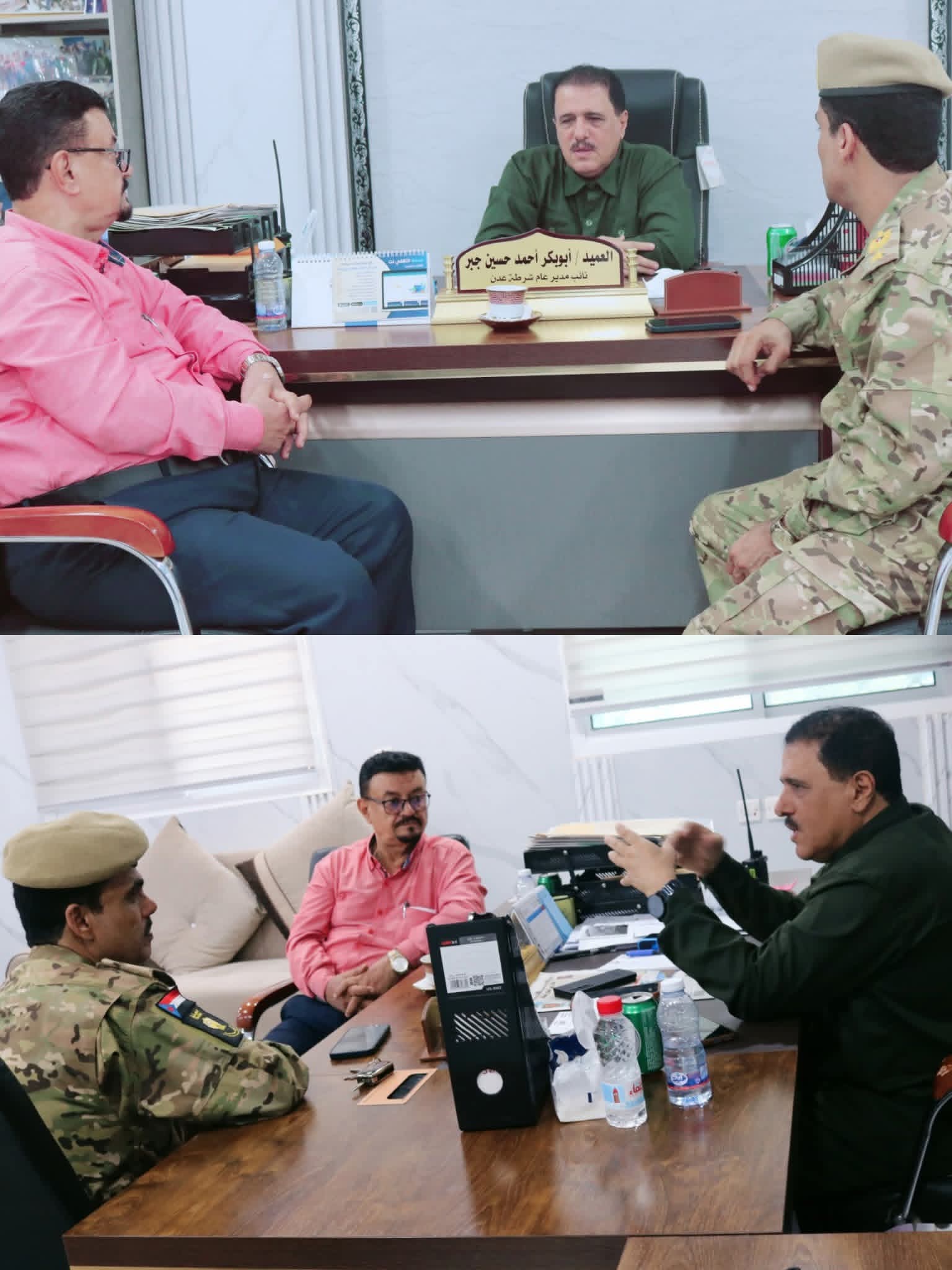 بحث نائب مدير أمن العاصمة عدن، العميد أبو بكر جبر، اليوم، مع مدير فرع مصلحة الهجرة والجوازات في مديرية خور مكسر، العقيد صالح عاطف، عدداً من القضايا الإدارية والصعوبات التي تعترض سير العمل بالفرع.