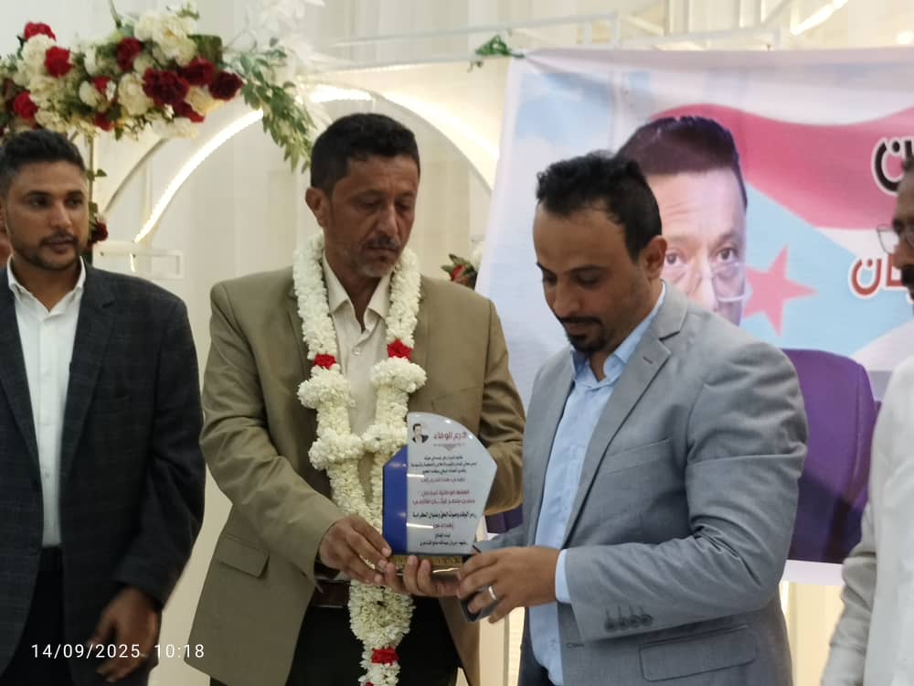 مستوى محافظة أبين في كافه المجالات ما قبل ترأسه قيادة المجلس في المحافظة والذي استطاع من خلالها قيادته للمجلس الانتقالي بحنكة قيادية مرنه في مرحلة حرجة وحساسة شهد له الجميع رغم الذي اختلفوا معه ومع بدء الحفل توافدت جموع المهنئين من أكثر مديريات المحافظة بما فيها مديريات يافع للاستمتاع لحظات التكريم