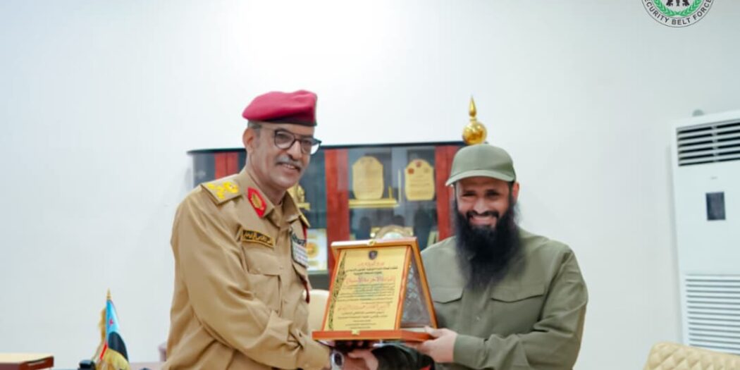 وقام العميد الركن وهيب بن سلم، مدير دائرة التوجيه المعنوي والسياسي بالقوات المسلحة الجنوبية، بتسليم درع تقديري للعميد الوالي في مقر القيادة العامة لقوات الحزام الأمني، عرفاناً بما قدمته هذه القوات من دور إنساني ووطني بارز في إنقاذ المتضررين، ومساندة المواطنين، وفتح الطرقات التي أغلقتها السيول.
