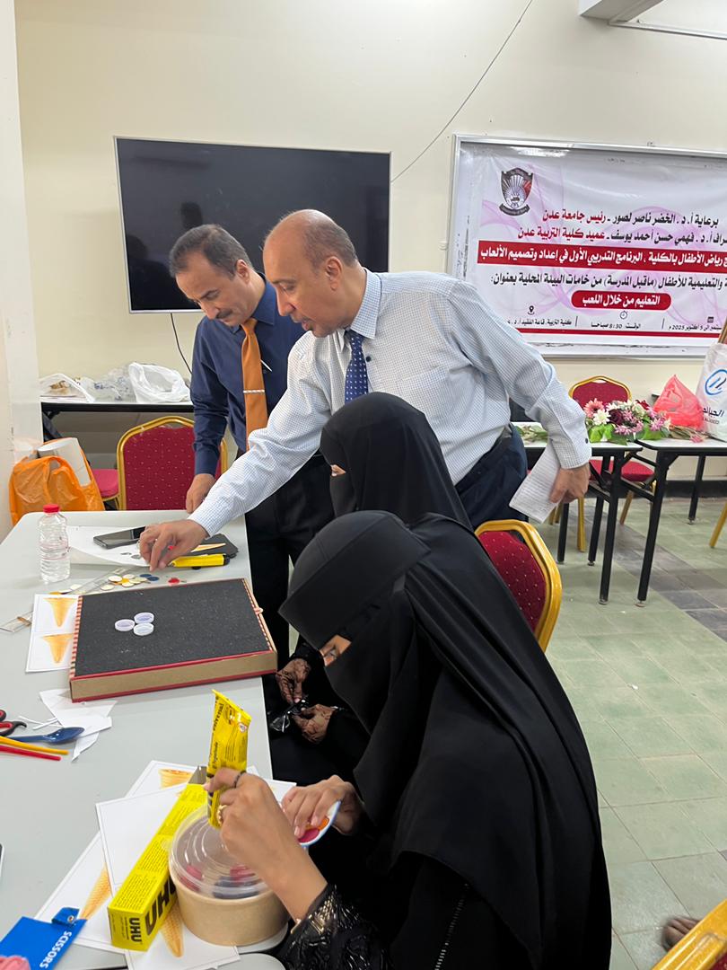 شهدت قاعة الفقيد أ.د. عبدالمطلب جبر بكلية التربية جامعة عدن، صباح اليوم الاثنين 29 سبتمبر، تدشين البرنامج التدريبي الأول الخاص بإعداد وتصميم الألعاب التربوية والتعليمية للأطفال ما قبل المدرسة باستخدام خامات البيئة المحلية، والذي يأتي مخصصًا لطلبة برنامج رياض الأطفال.