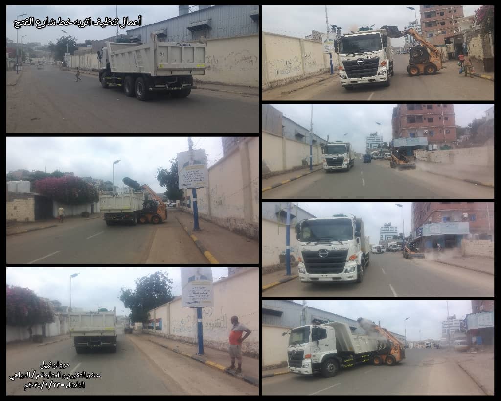 و شملت الحملات كافه احياء المعلا. في قشط الأتربة والمخلفات المتبقيه نتيجه المنخفض الجوي وبرش الأتربة و في مديريه التواهي