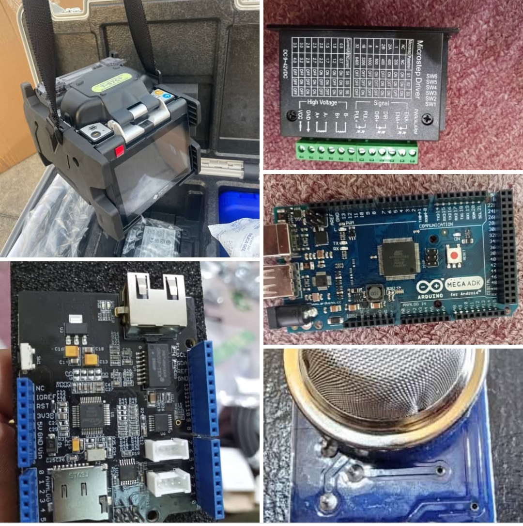 وشملت الضبطية التي تتكون من اكثر من 90 نوعا مكونة من أجهزة لحام الألياف الضوئية ولوحات برمجية وحساسات متنوعة إضافة الى كايبلات توصيل.