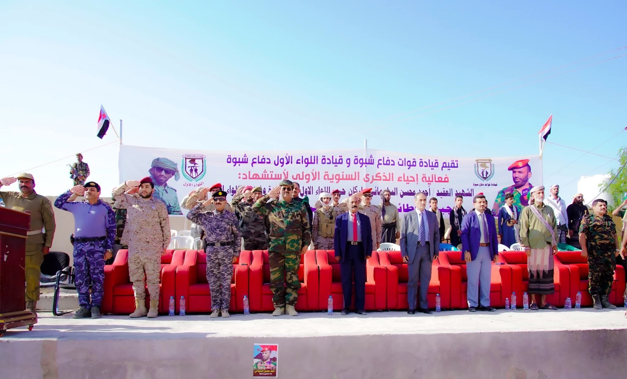 وأشاد العميد الكليبي بالقوة والانضباط الذي ظهر به العرض العسكري، مؤكداً أن قوات دفاع شبوة ستظل حارساً أميناً للجنوب، ماضية بثبات على درب الشهداء الأبرار، وفي مقدمتهم الشهيد العقيد أحمد السليماني.