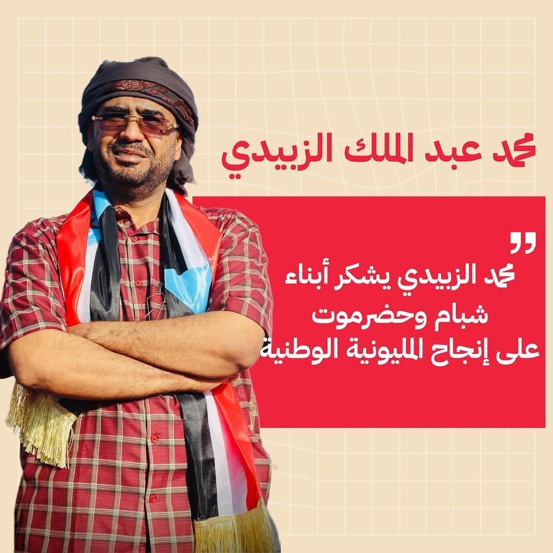 وثمّن الزبيدي الأدوار الميدانية والتنظيمية التي قامت بها اللجان المشكلة في الهيئة التنفيذية المساعدة وهيئات المديريات، مؤكدًا أن هذا التلاحم المجتمعي والسياسي يعكس روح الانتماء الوطني للصف الحضرمي الجنوبي، ويبرهن على الإرادة الشعبية الراسخة للمضي نحو استعادة الدولة الجنوبية وبناء مستقبلٍ مستقرٍ وآمنٍ لجميع أبنائها.
