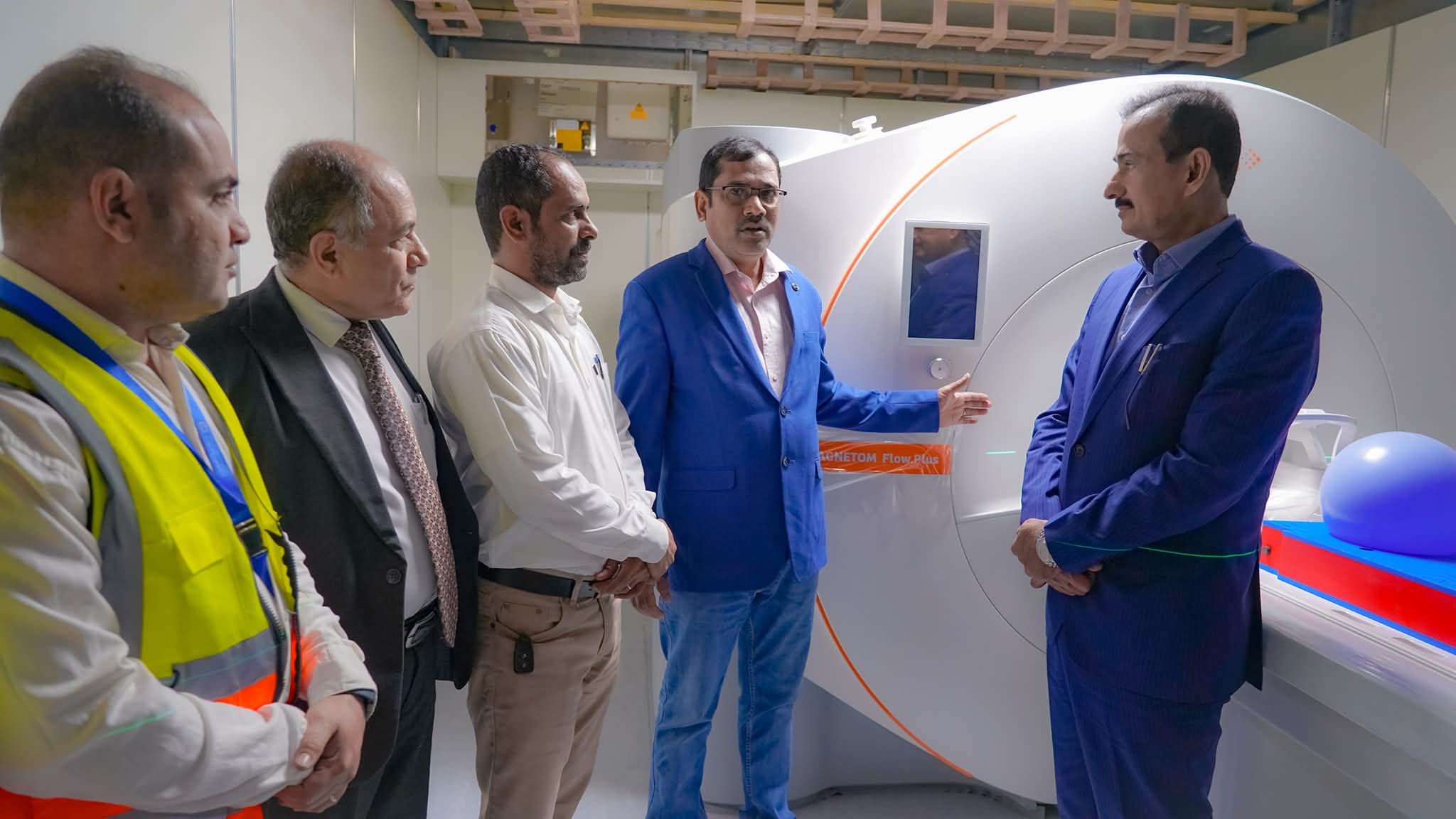 وخلال زيارته الميدانية التفقدية، اطلع المحافظ بن الوزير على سير مرحلة التدريب الفني لوحدتي الرنين المغناطيسي والتصوير المقطعي المحوسب، المنفذتين وفقًا لأحدث المعايير الفنية العالمية من قبل الشركة الألمانية الدولية (سيمنس – Siemens)، مستمعًا من إدارة المستشفى والفنيين إلى شرحٍ مفصل حول آليات التشغيل الأولية، ومستويات الطواقم الفنية، وبرنامج التدريب التخصصي الذي يستمر لمدة شهر كامل، ويهدف إلى رفع كفاءة الكادر الوطني وضمان جاهزيته للتعامل مع التقنيات الطبية الدقيقة.