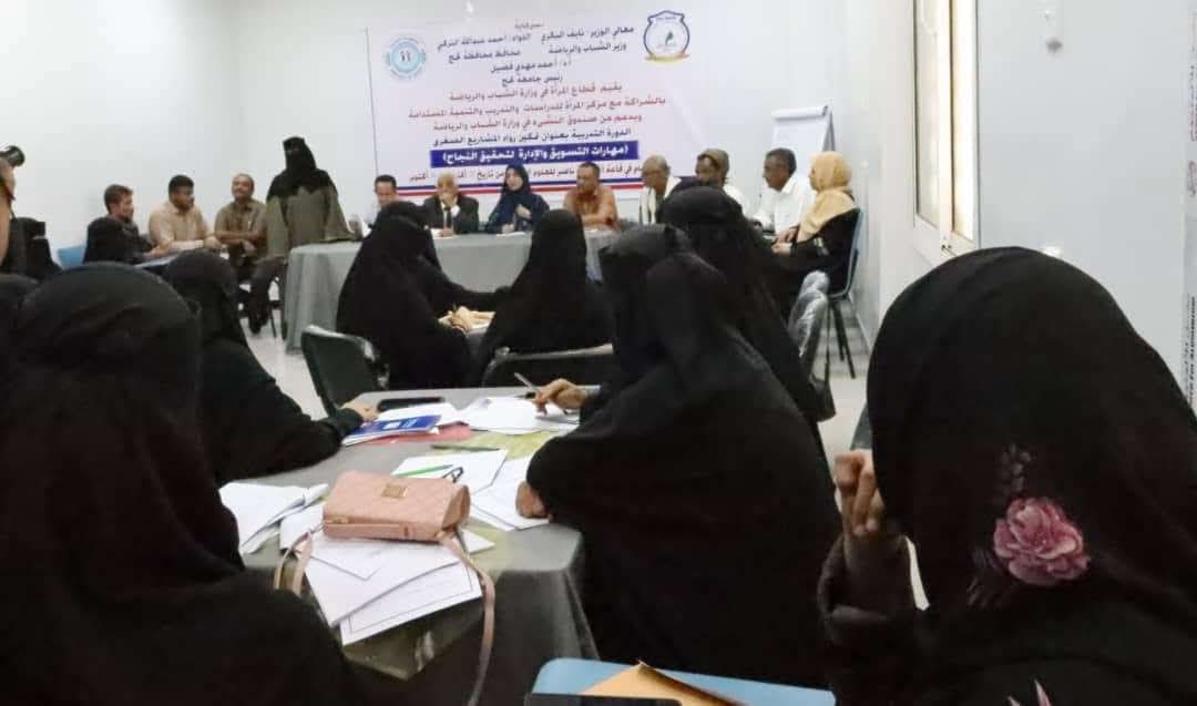 دشن رئيس الهيئة التنفيذية للقيادة المحلية للمجلس الانتقالي الجنوبي في محافظة لحج، وضاح الحالمي، اليوم الأحد، دورة تدريبية في تعزيز دور المرأة وتمكينها من ريادة المشاريع الصغيرة، نظمها قطاع المرأة بوزارة الشباب والرياضة، بالشراكة مع مركز المرأة للدراسات والتدريب والتنمية المستدامة.