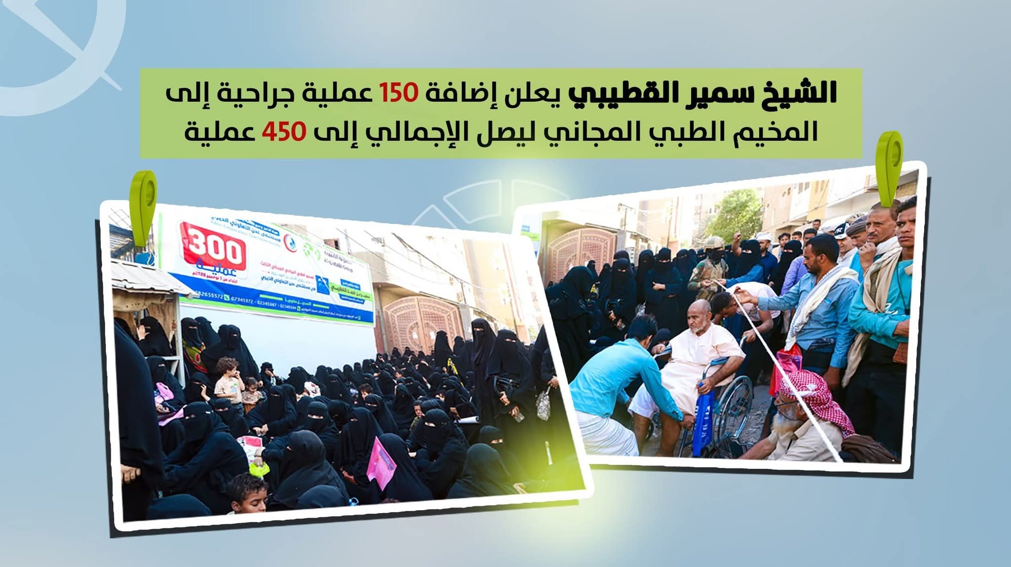 في مبادرة إنسانية جديدة تعكس روح المسؤولية المجتمعية، أعلن الشيخ سمير أحمد القطيبي، رئيس مجلس إدارة مجموعة القطيبي، عن إضافة 150 عملية جراحية جديدة إلى برنامج المخيم الطبي الجراحي المجاني الثالث المقام حاليًا في مستشفى عدن التعاوني الخيري، ليرتفع بذلك عدد العمليات المستهدفة إلى 450 عملية جراحية.