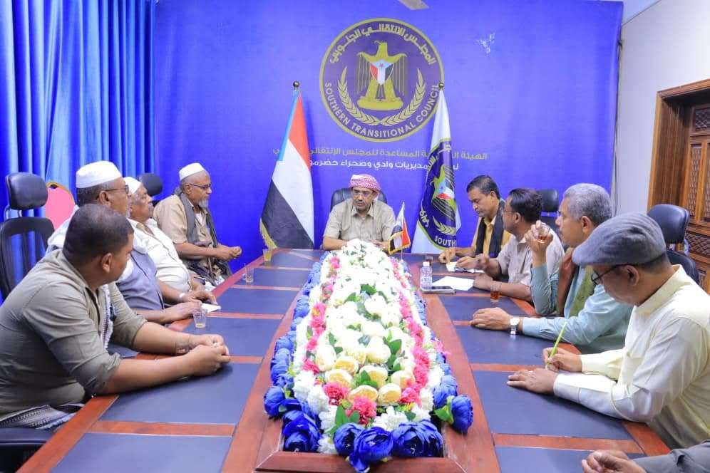 التقى رئيس الهيئة التنفيذية المساعدة للمجلس الانتقالي الجنوبي لشؤون مديريات وادي وصحراء حضرموت، محمد عبدالملك الزبيدي، اليوم الثلاثاء، بمقدم حافة القطن للألعاب الشعبية الشبواني، ردفان عوض باعطوة.