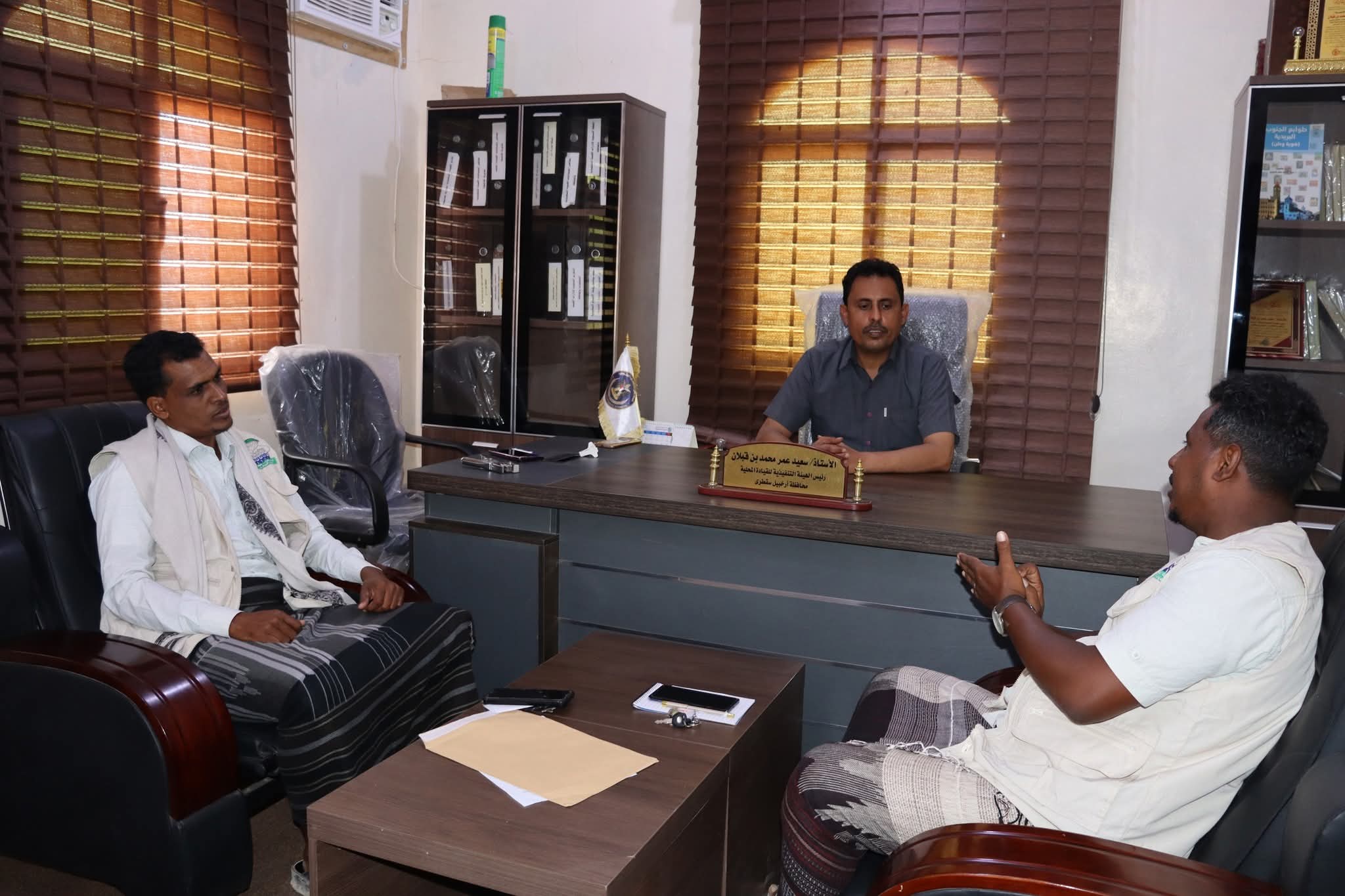 التقى رئيس الهيئة التنفيذية للقيادة المحلية للمجلس الانتقالي الجنوبي في محافظة سقطرى، سعيد عمر بن قبلان، اليوم الاثنين، برئيس مؤسسة شباب سقطرى للتنمية المستدامة، عمار صعباب، والمدير المالي للمؤسسة، مبارك علي صالح.