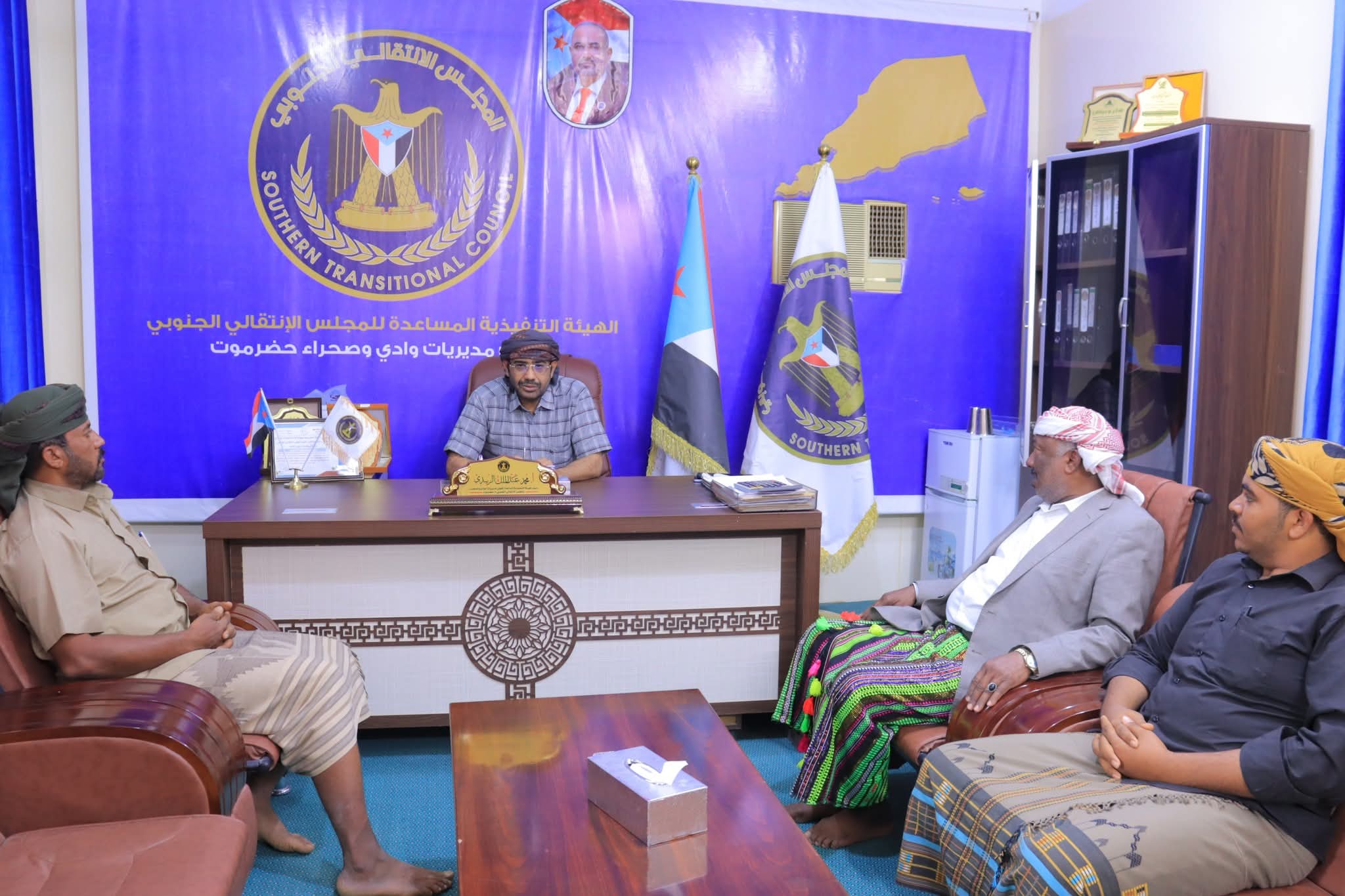 التقى رئيس الهيئة التنفيذية المساعدة للمجلس الانتقالي الجنوبي لشؤون مديريات وادي وصحراء حضرموت محمد عبدالملك الزبيدي، بالمهندس محمد بهيان عضو المجلس الاستشاري، ورئيس تحالف العمال والفلاحين والكادحين والصيادين "عماد".
