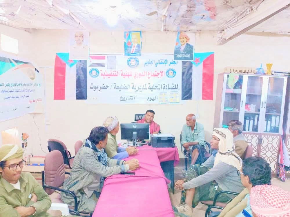 عقدت الهيئة التنفيذية للقيادة المحلية للمجلس الانتقالي الجنوبي بمديرية الضليعة، محافظة حضرموت، اليوم الخميس، اجتماعًا استثنائيًا مع رؤساء ونواب اللجان المحلية للمجلس الانتقالي بمراكز المديرية.