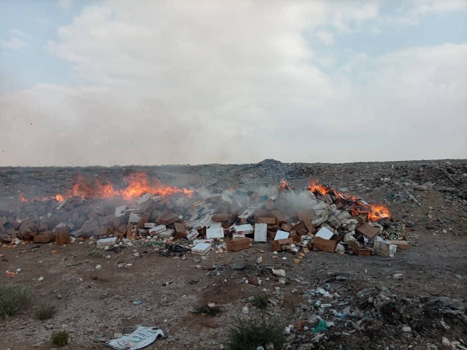 وأضاف المفلحي أن الفرق المختصة قامت صباح اليوم الخميس بإتلاف 5 أطنان من المواد الغذائية المتنوعة في مكب النفايات بمنطقة بئر النعامة بمديرية المنصورة.