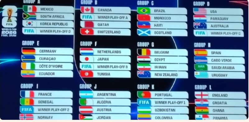 أُجريت، امس الجمعة، في العاصمة الأميركية واشنطن، قرعة بطولة كأس العالم لكرة القدم 2026، التي ستُقام للمرة الأولى في ثلاث دول هي الولايات المتحدة وكندا والمكسيك، وأسفرت عن مواجهات قوية في مرحلة المجموعات.