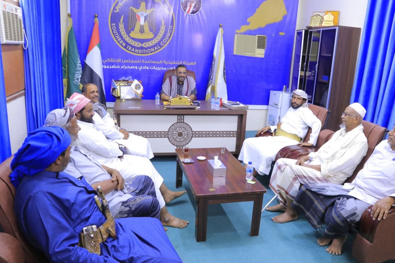 التقى رئيس الهيئة التنفيذية المساعدة للمجلس الانتقالي الجنوبي لشؤون مديريات وادي وصحراء حضرموت، محمد عبدالملك الزبيدي، اليوم الأحد، بنائب رئيس حركة إنقاذ حضرموت، محمد سعيد هلابي، وعدد من الشخصيات الاجتماعية.