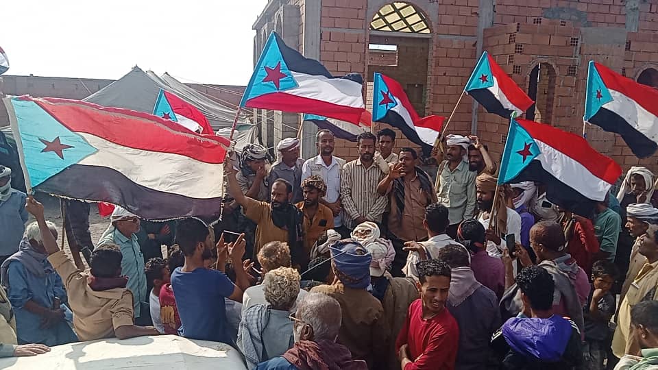 حيث وقف المعتصمون أمام ساحة الاعتصام عقب صلات الجمعة مرددين الشعارات الثورية الحماسية والاهازيج التي تدعو لإعلان دولة الجنوب العربي يتقدمهم رئيس القيادة المحلية في المديرية الاستاذ جليل احمد علي.