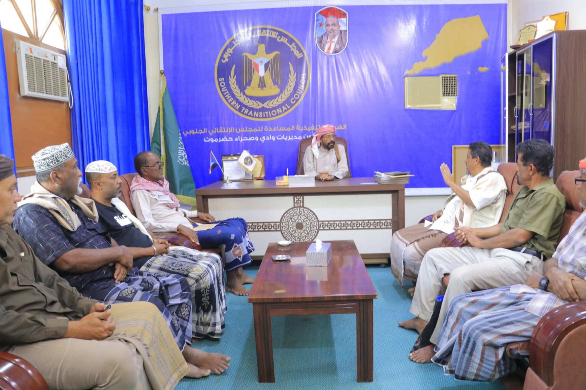 التقى نائب رئيس الهيئة التنفيذية المساعدة للمجلس الانتقالي الجنوبي لشؤون مديريات وادي وصحراء حضرموت، كرامة بن سالم بن الصقير، اليوم الأربعاء، عددًا من الشخصيات الاجتماعية من منطقة قسم بمديرية تريم، وقيادة اللجنة المحلية بمزكز قسم التابع لانتقالي تريم.