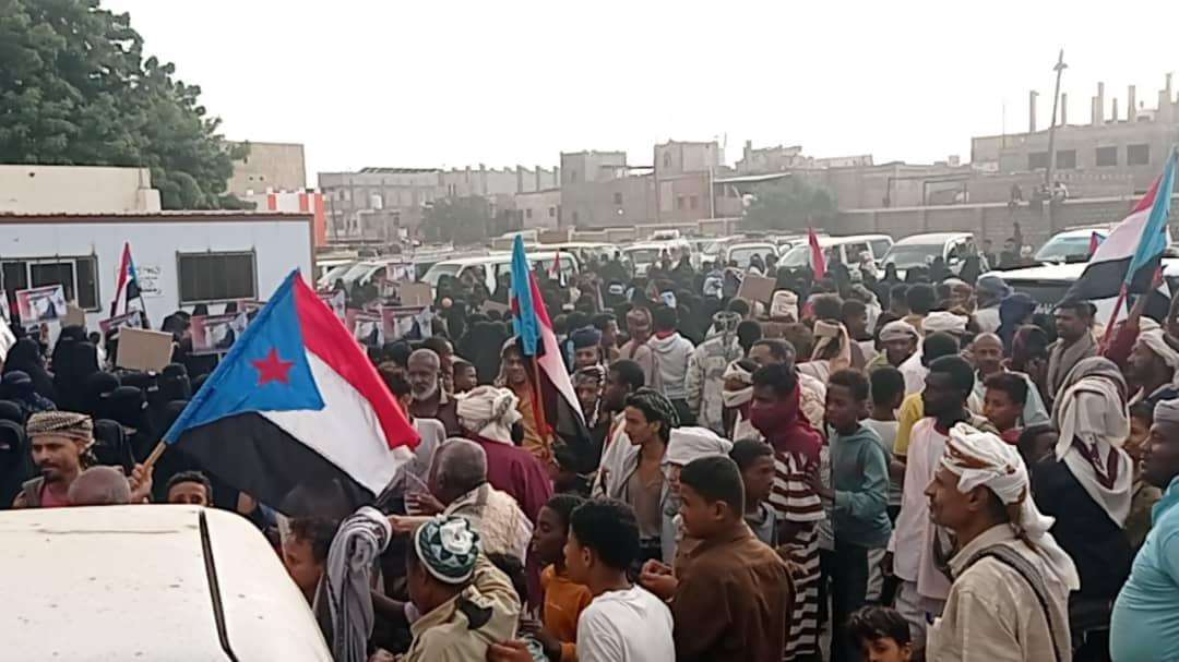 ورفعت الجماهير المحتشدة أعلام دولة الجنوب العربي ودولة الإمارات العربية المتحدة، وصور الرئيس الزُبيدي، مرددين هتافات منددة بالعدوان السعودي، ومؤيدة للإعلان الدستوري، ومساندة كل القرارات والخطوات المتخذة لمواجهة التحديات وتحقيق الاستقلال الكامل