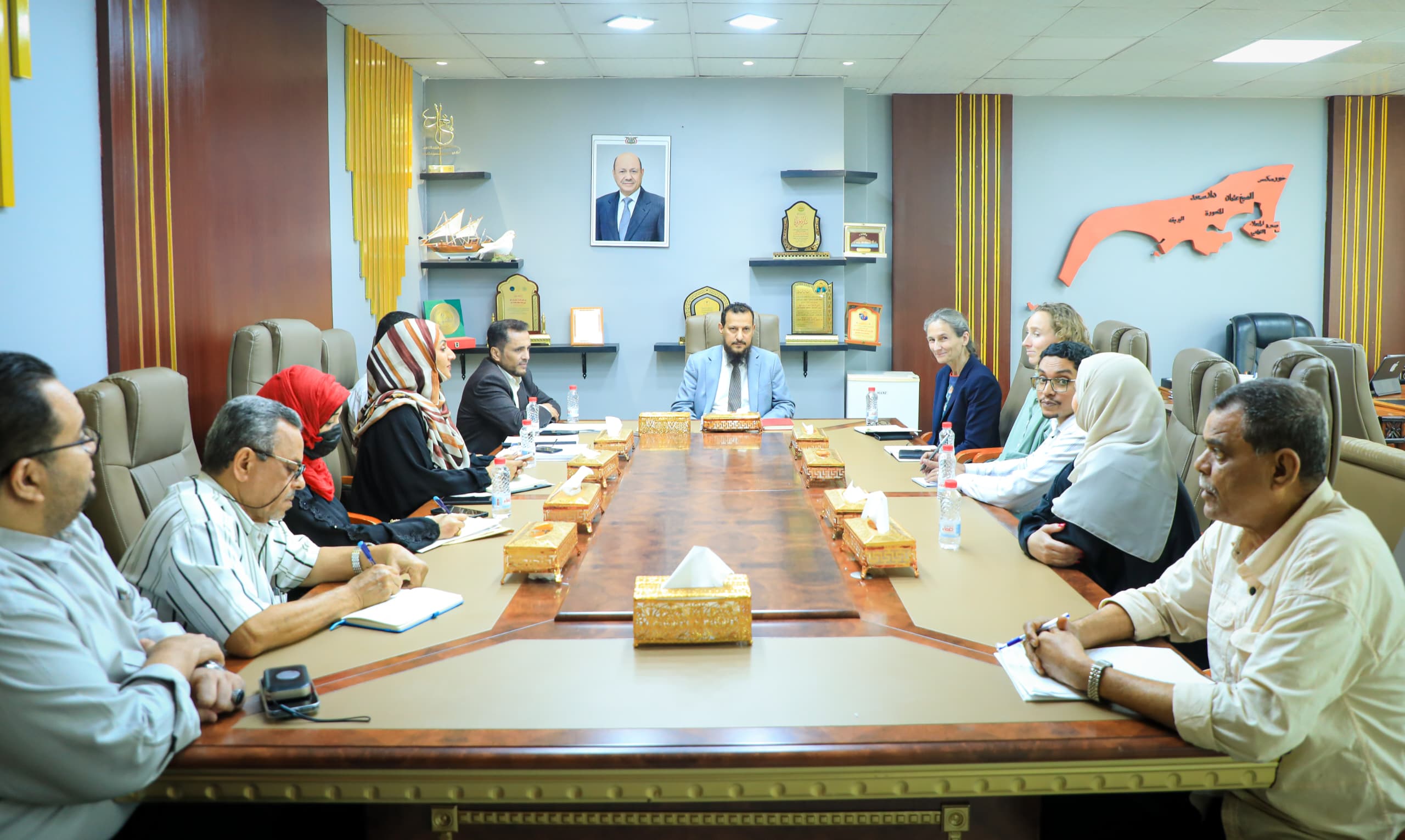 حضر اللقاء مدير الوحدة التنفيذية للمشاريع الممولة خارجياً المهندس فتحي السقاف، ومستشار المحافظ رضا حاجب، وريدان عبده إسماعيل مديرة تنمية الإيرادات.